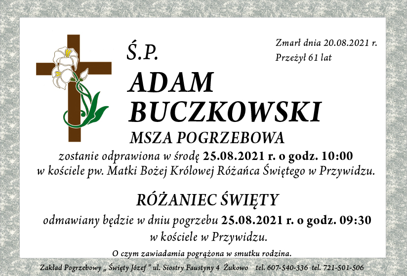 ADAM BUCZKOWSKI – Zakład Pogrzebowy "Święty Józef" Żukowo