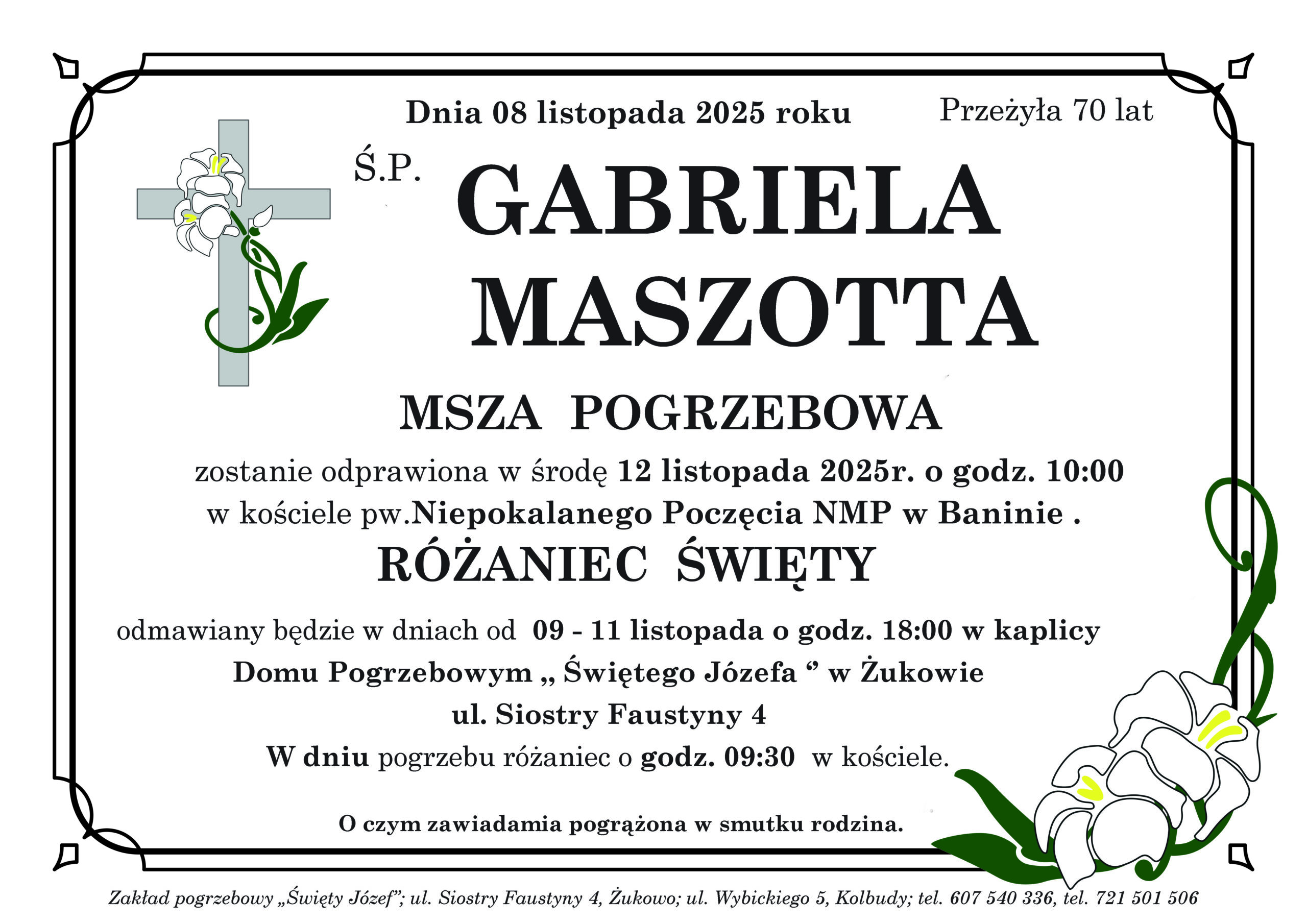 Gabriela Maszotta – Zakład Pogrzebowy "Święty Józef" Żukowo