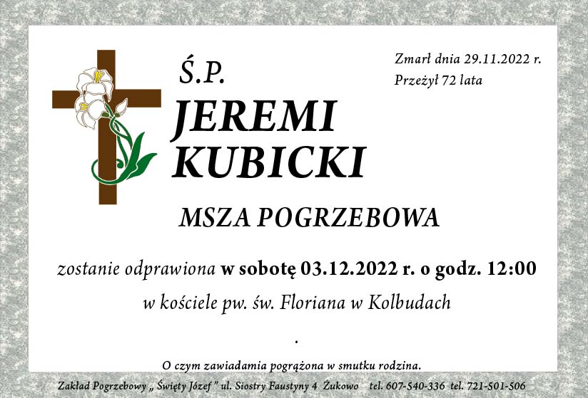 jeremi kubicki – Zakład Pogrzebowy "Święty Józef" Żukowo