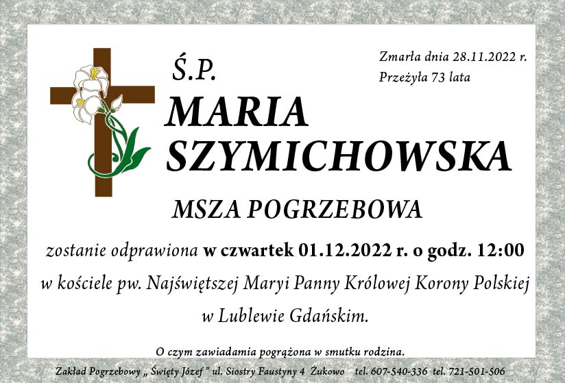 MARIA SZYMICHOWSKA – Zakład Pogrzebowy "Święty Józef" Żukowo